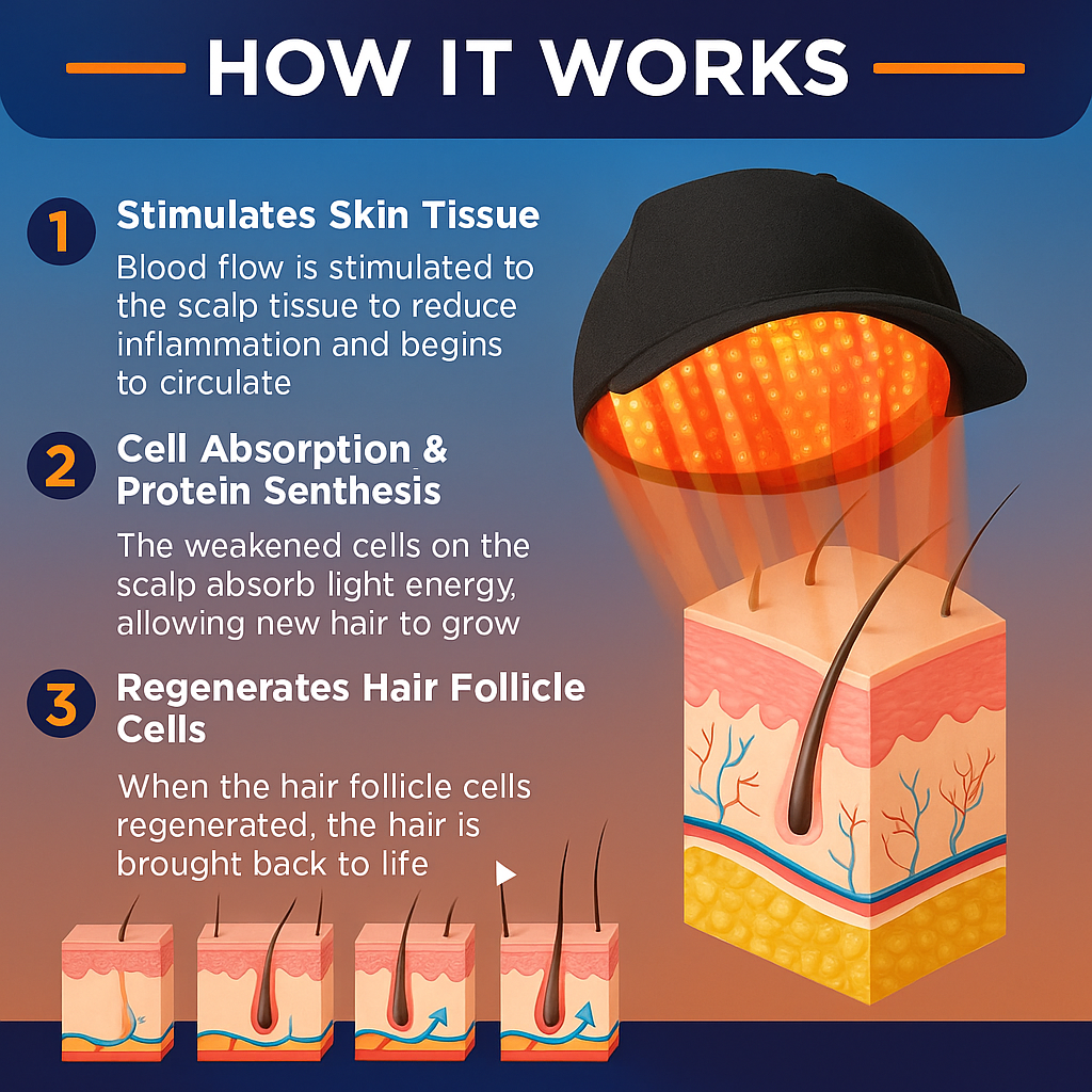 - 850nm Infrared Light: Penetrates deeper to promote cell repair, boost metabolism, and extend the growth phase of your hair.